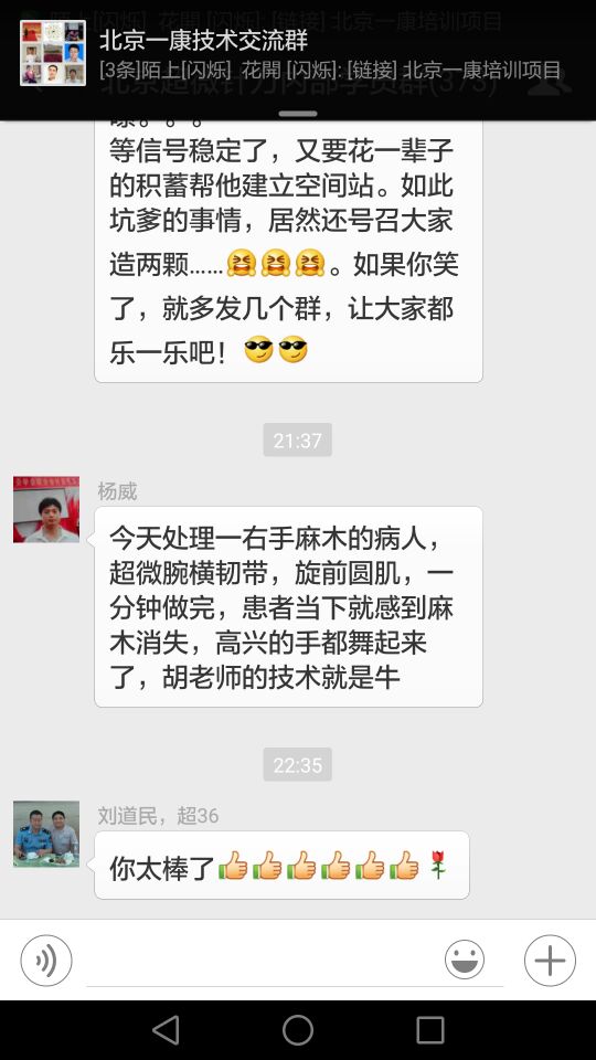 “超微针刀、圆利针疗法”是胡超伟老师用20多年时间研究的技术成果,也是他临床经验的总结,“超微针刀、圆利针”发展至今天已经非常成熟和完善,在培训举办的7年时间里,技术不断提升,教学方法不断改进。为了让每个学员学会,培训中心也付出了很多的努力。包括建交流平台,开辟呱呱讲堂,网群辅导,一对一电话解答......我们真诚希望每个走进北京一康的学员,都能成为治痛高手。另外胡超伟老师的毫不保留的讲解,使我们的学员,学后就能应用于临床,并且取得的满意的疗效。